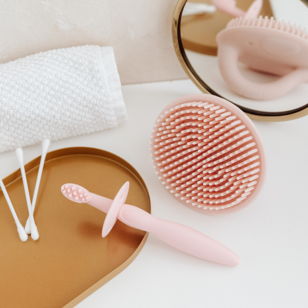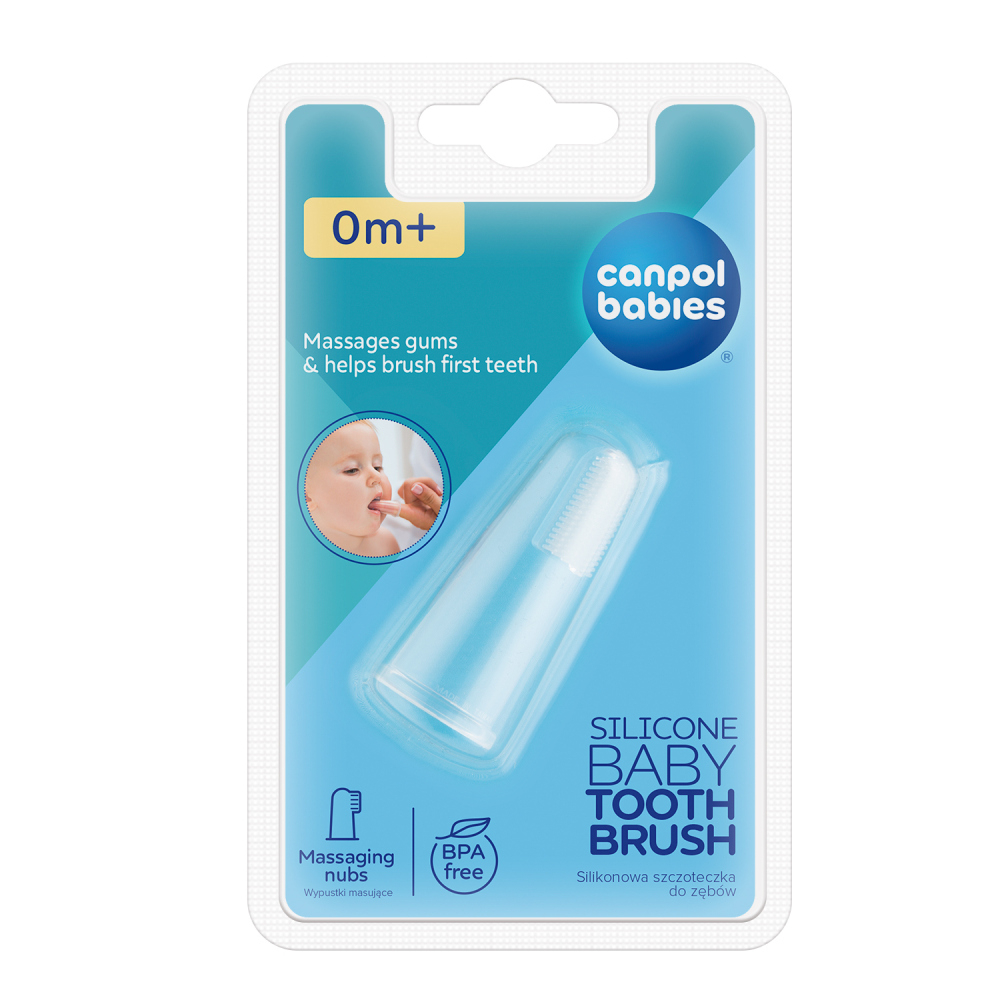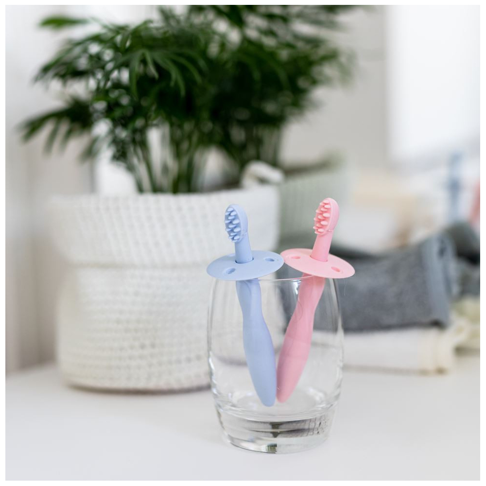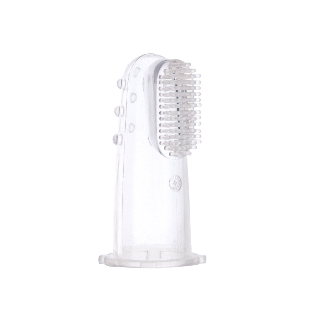 Silikonska četkica za zube s etiketom i glodalicom u jednom za mališane. Koristi se za nježno čišćenje prvih mliječnih zubića, a ujedno i za masažu osjetljivih desni. Pogodno od 0 mjeseci. Bez BPA.