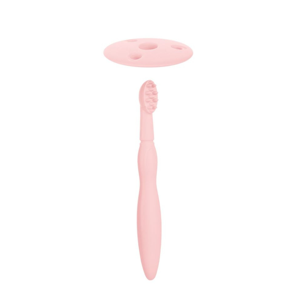 - Izrađena od mekog i sigurnog silikona — nježno masira desni i čisti prve mliječne zubiće.