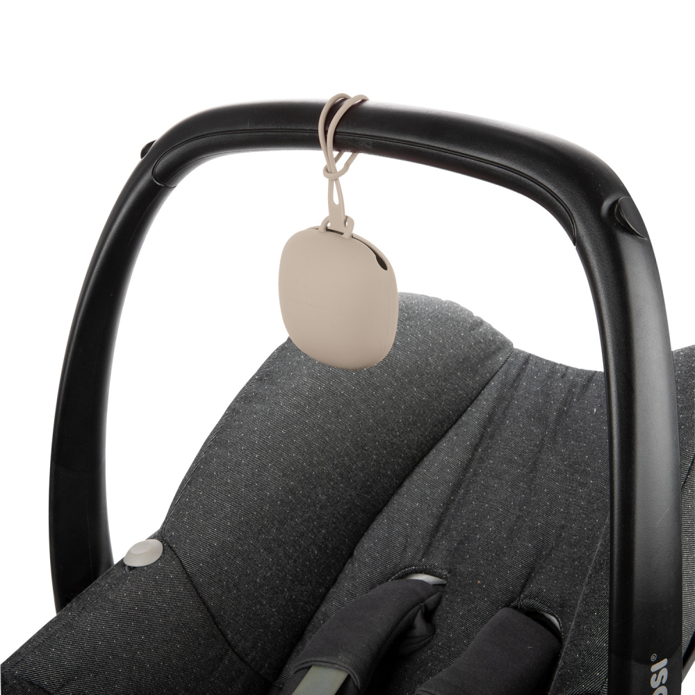 Fleksibilna ručka kutijice može se lako pričvrstiti na torbu ili kolica, a posebno dizajniran bočni otvor omogućuje umetanje i vađenje dude bez potrebe za odvajanjem cijele kutijice. Silikonska kutijica ima poseban antistatički premaz koji je otporan na nakupljanje prašine, što kutijicu čini lakom za čišćenje.