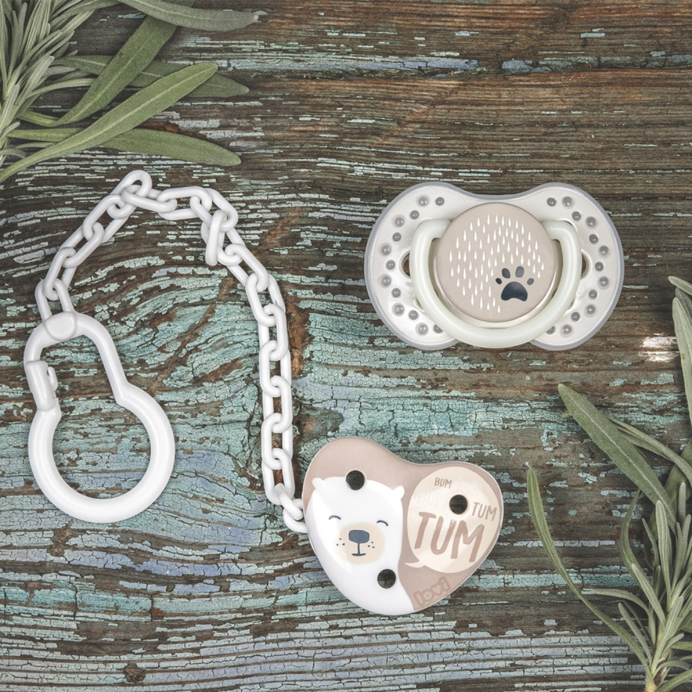 Dinamična duda LOVI iz kolekcije TEDDY LOVE sigurna je za refleks sisanja i ne ometa razvoj govora i ugriza*.